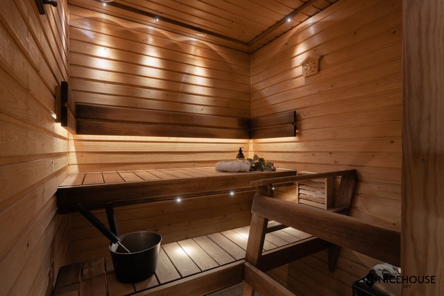 - Tyylikäs ja tunnelmallinen sauna. Saunasta on kiva mennä jäähdyttelemään suojaisalle terassille.