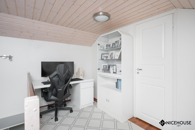 - Käyttöullakko n. 30m2 on todella monikäyttöinen tila. Siellä on erillinen varasto-/vaatehuonekomero ja matalampaa osaa on hyödynnetty säilytykseen. Yläkerrassa on toinen asunnon ilmalämpöpumpuista.