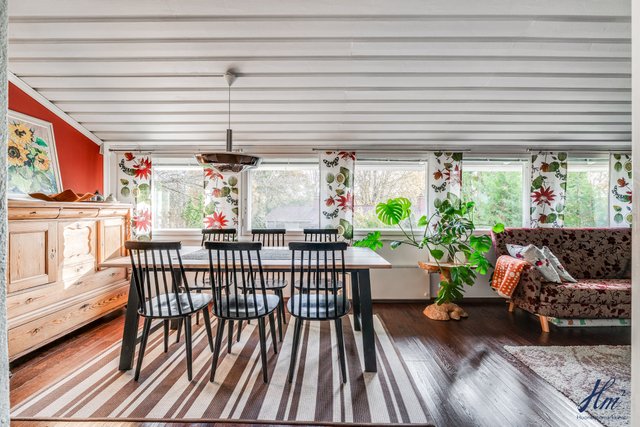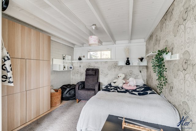Alakerrassa on mahdollisuus muokata tilaa kahdeksi makuuhuoneeksi, mikä lisää joustavuutta perheen tarpeiden mukaan. Alakerrassa on myös varaava takka.