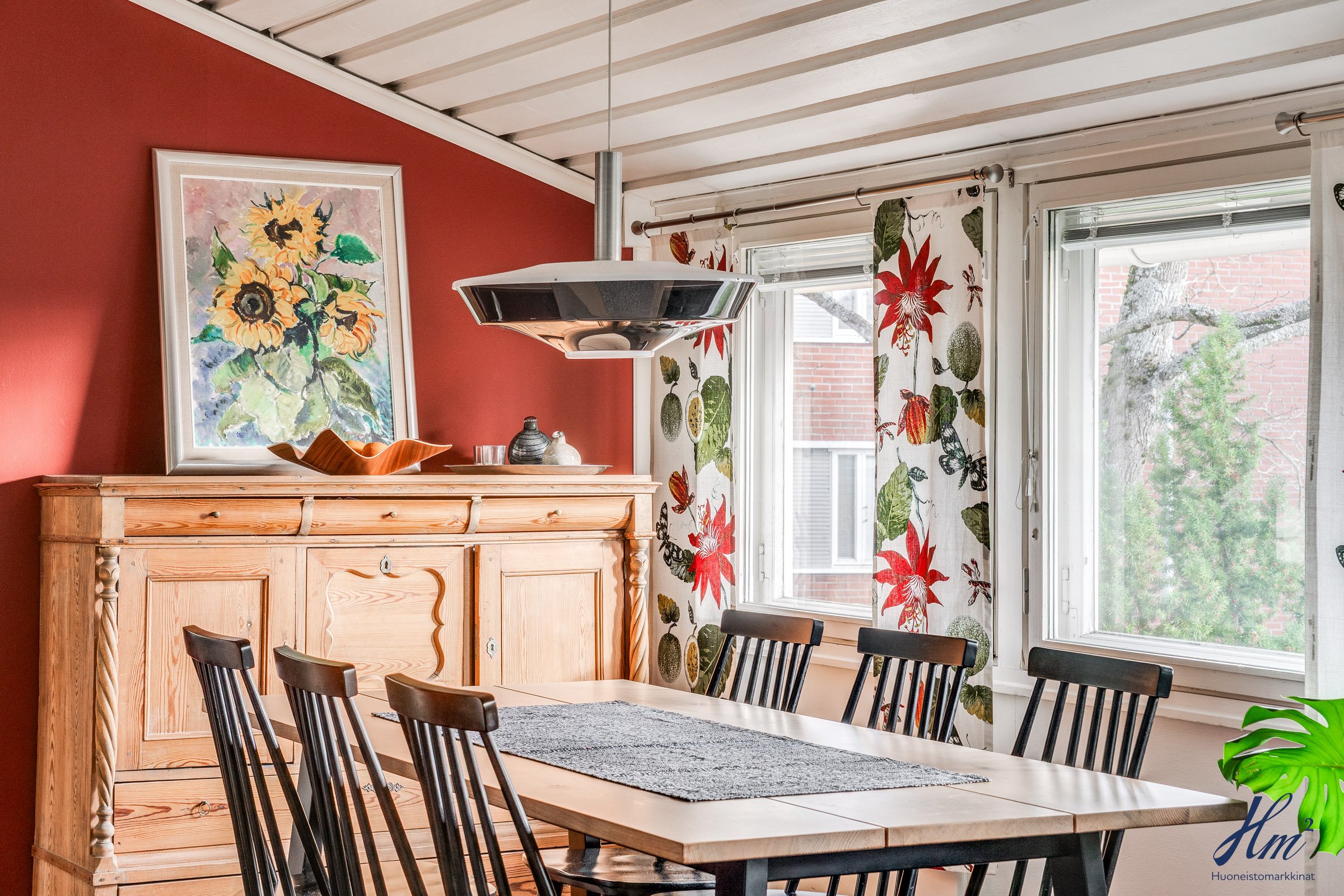 Tämä tilava 1963 valmistunut rivitalon päätyasunto Turun Kärsämäessä tarjoaa loistavat puitteet perheelle, joka arvostaa rauhallista asumista hyvien kulkuyhteyksien äärellä. Kärsämäki on rauhallinen ja luonnonläheinen alue. Koulut ja päiväkodit ovat lähellä.