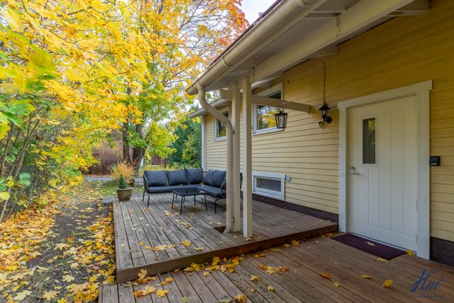 Ulkoalueella on viihtyisä terassi, jossa voi nauttia kesäpäivistä. Säilytystilaa löytyy runsaasti, ja autotalli tarjoaa paikan autolle. Yhtiössä on tehty useita remontteja vuosien varrella.