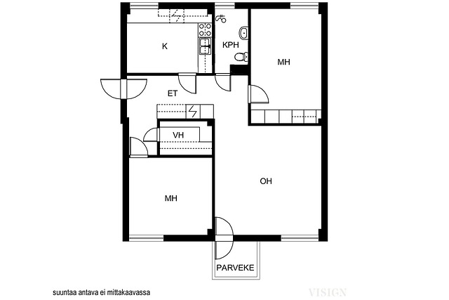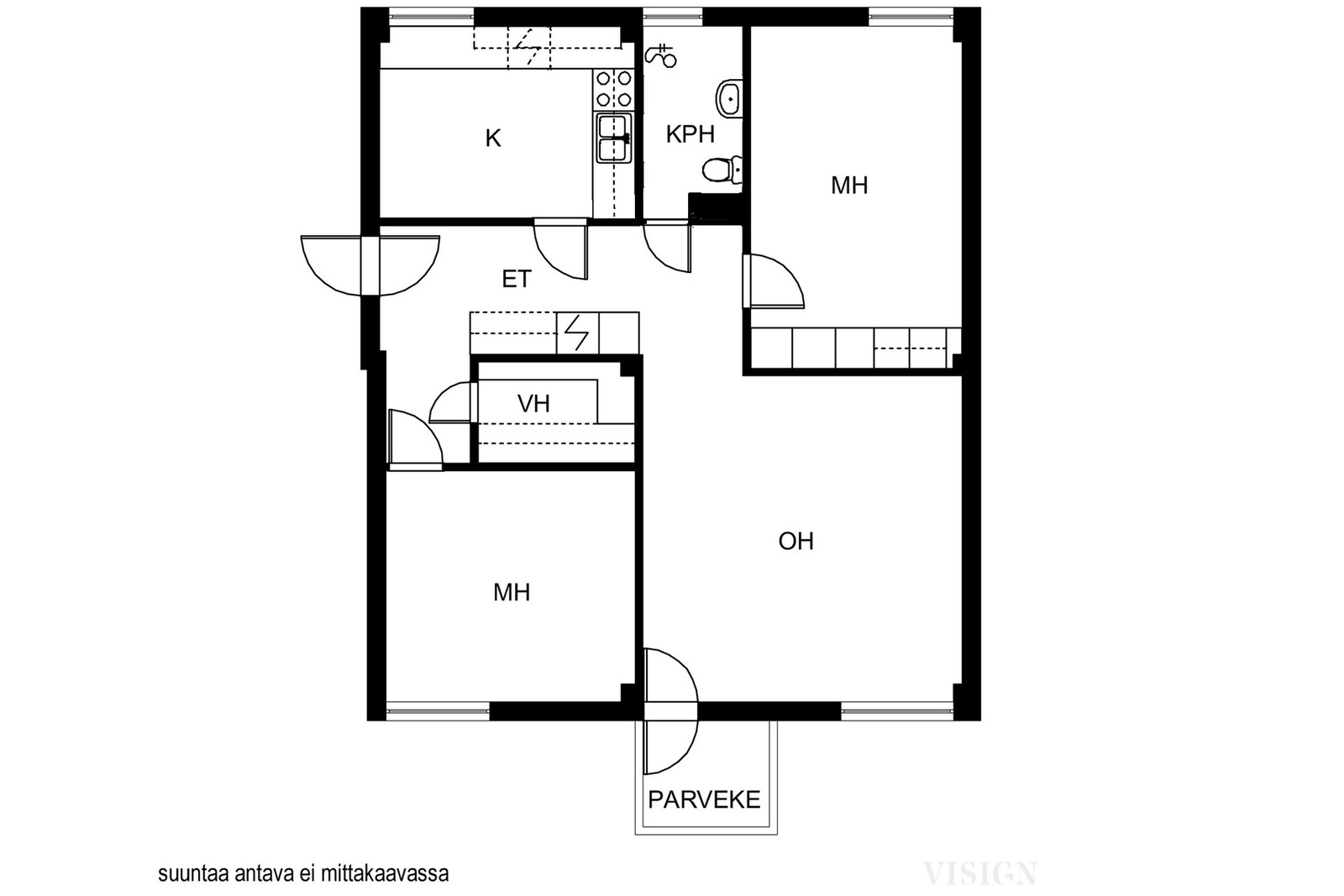 Huoneisto sijaitsee talon ensimmäisessä kerroksessa ja on siistikuntoinen. Tilavat huoneet, olohuoneesta on käynti parvekkeelle. Asunnossa hyvät säilytystilat; vaatehuone sekä kaapistot eteisessä ja makuuhuoneessa. Taloyhtiö on hyvin hoidettu, liitetty kaukolämpöön ja sijaitsee omalla tontilla.