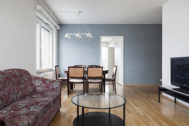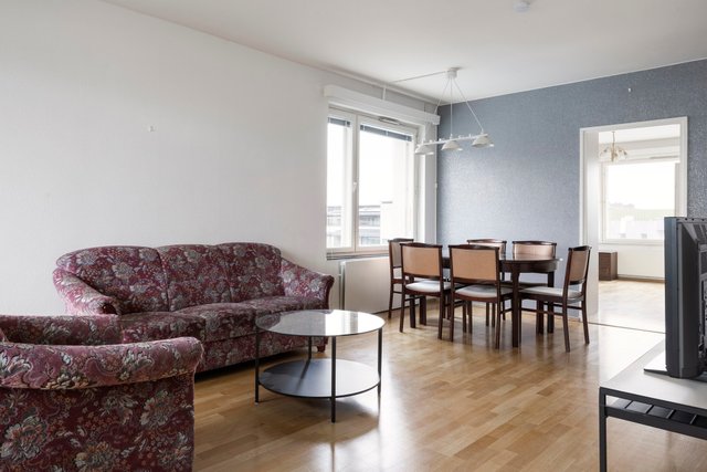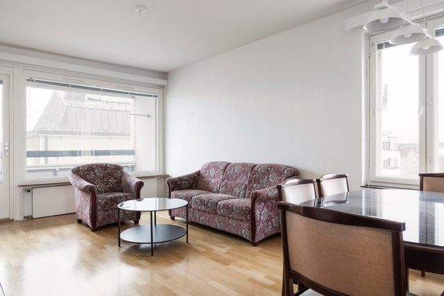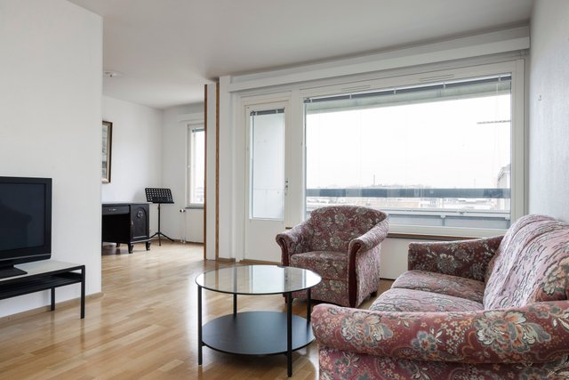 - Tilava olohuone, jossa ikkunat kahteen suuntaan. Käynti lasitetulle parvekkeelle.