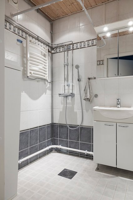 - Laatoitettu, siistikuntoinen pesutila/wc.