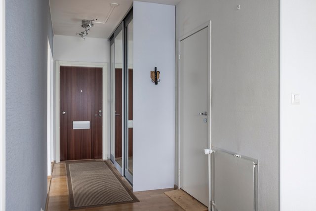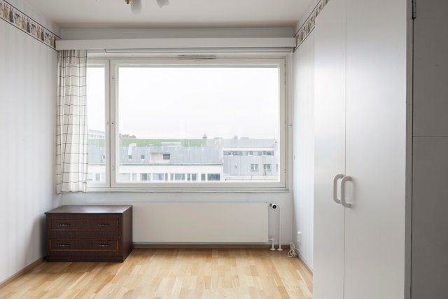 Kolme makuuhuonetta mukautuvat elämäntilanteen mukaan: lastenhuoneiksi, työtilaksi, vierashuoneeksi tai rauhalliseksi paikaksi vetäytyä päivän päätteeksi. Kahdesta makkarista löytyy liukuovikomerot säilytystilan tarpeeseen. Ja sitten on parveke – lasitettu, suojaisa, oma pieni näköalapaikka, jossa kahvi maistuu paremmalta ja ilta-aurinko viipyy hetken pidempään.
