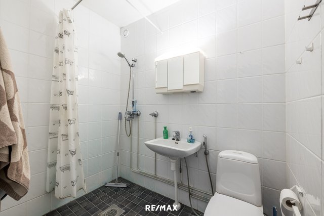 - WC-istuin, suihku, peilikaappi, pesuallas, ja bidee-suihku