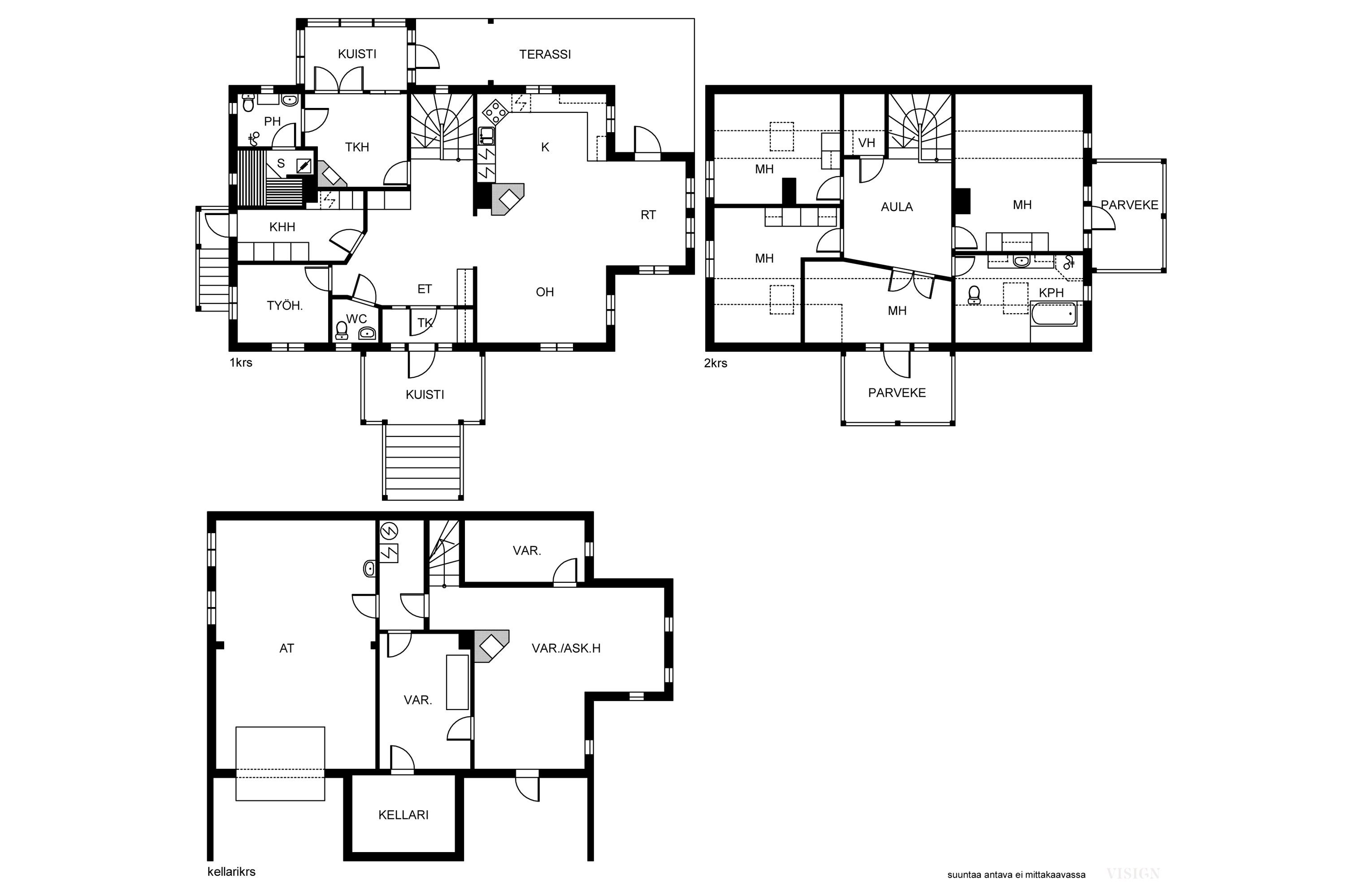 - Kellari kivirakenteinen, muut kerrokset puurakenteisia.