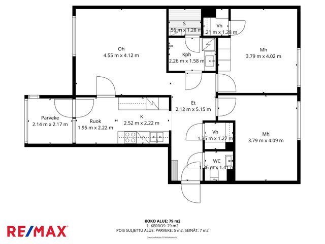 - Ei tarkistusmitattu. Pinta-alat saattavat tämän ikäisissä kohteissa (yhtiö rekisteröity ennen 01.01.1992) poiketa olennaisestikin asuinrakennusten nykyisten mittaustapojen ja standardien (SFS 5139) mukaan laskettavasta asuintilojen pinta-alasta. Pinta-ala voi siis olla edellä mainittua pienempi tai suurempi.