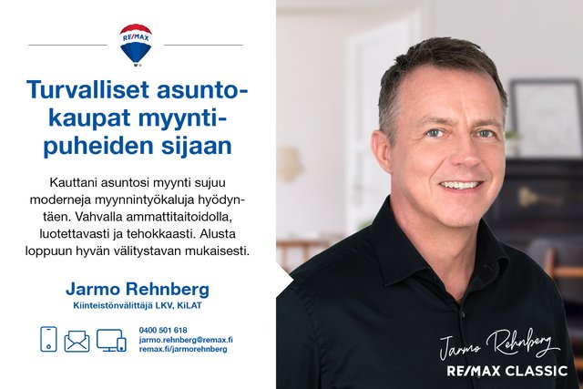 Tätä asuntoa myy Jarmo Rehnberg, Kiinteistönvälittäjä LKV, KiLAT / Cloud Shop Oy