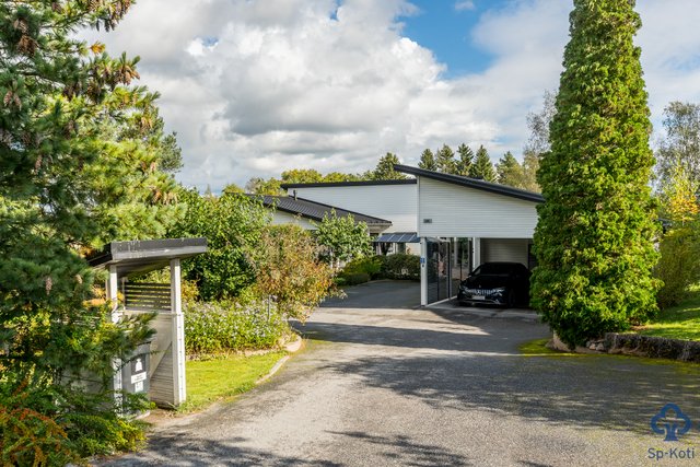 Pihalla sijaitsee tilava autokatos/varastorakennus, jossa kaksi lämmitettyä varastoa ja tilaa kahdelle autolle. Suuri piha rajoittuu kahdelta sivulta rauhalliseen puistoalueeseen.