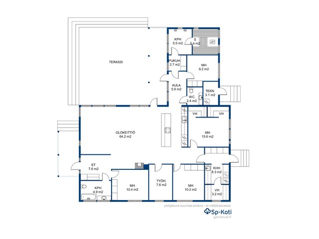 Moderni omakotitalo avarilla tiloilla ja hyvällä pohjaratkaisulla