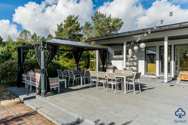 - Talo sijaitsee suurella tontilla, joka tarjoaa runsaasti tilaa niin leikeille, oleskelulle kuin viherpeukalon unelmillekin. Piha rajoittuu kahdelta sivulta puistoalueeseen, mikä takaa rauhallisen ympäristön – täällä saat nauttia omasta rauhasta ja luonnonläheisyydestä aivan kotiovella.