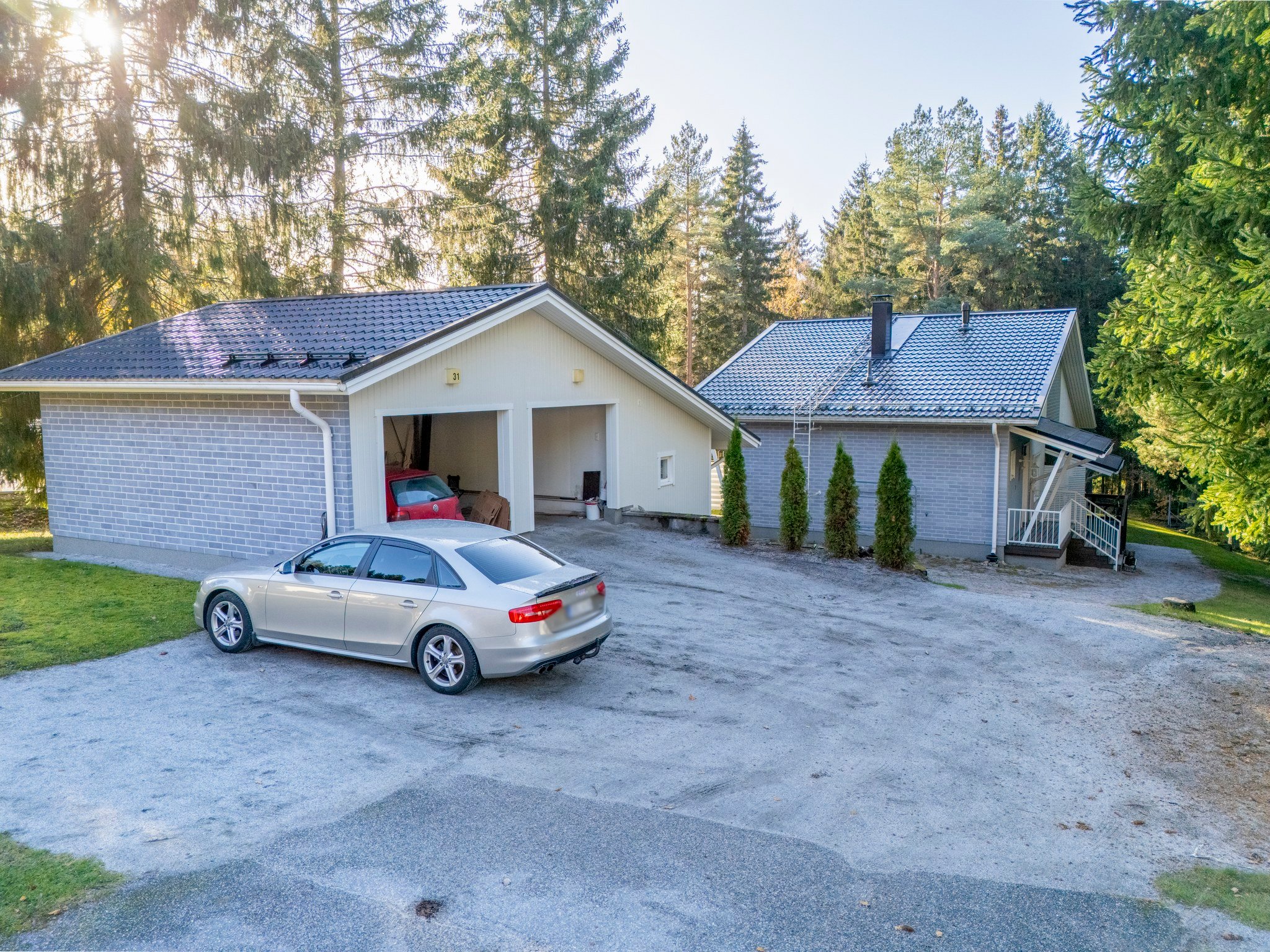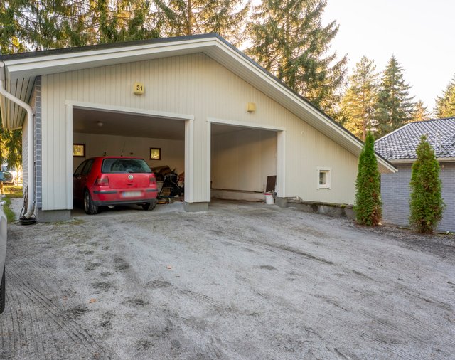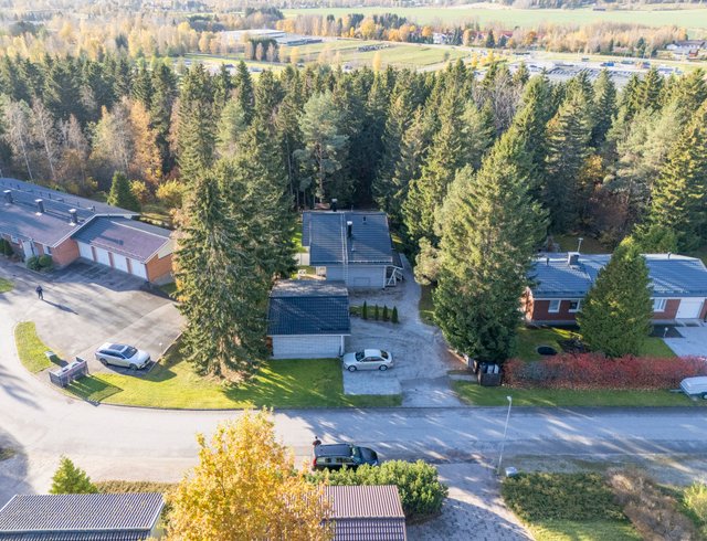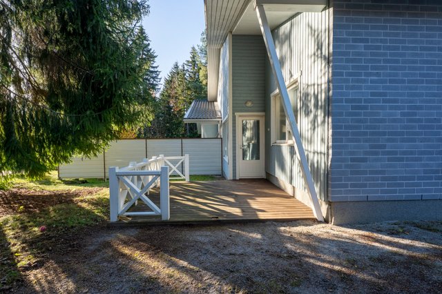 Pihalla on tilava, lämmin varasto ja autolle katospaikka, ison kuusen suojassa terassi. Lähellä sijaitsevat palvelut, kuten kauppa ja päiväkodit, alakoulu on vain 200 metrin päässä.