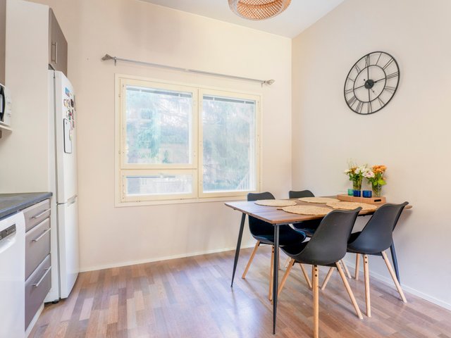 Keittiössä on tehty pieniä pintaremontteja vuosina 2019 ja 2025 ja sieltä löytyy modernit kodinkoneet. Kylpyhuoneessa on lattialämmitys ja saunassa sähkökiuas.