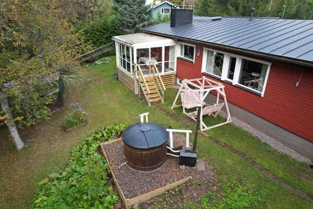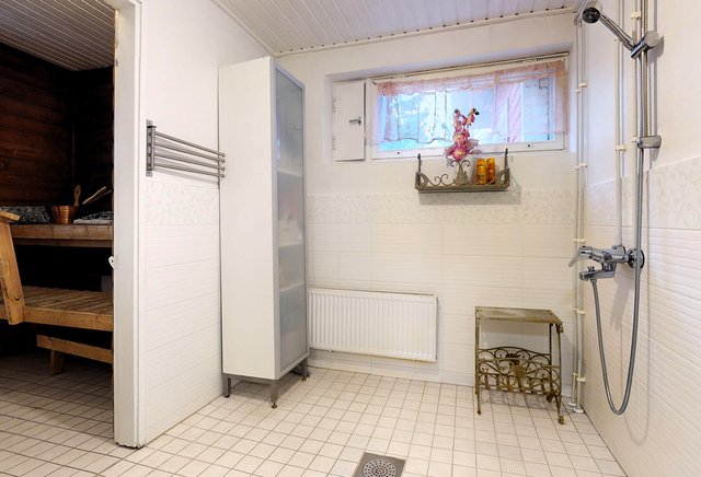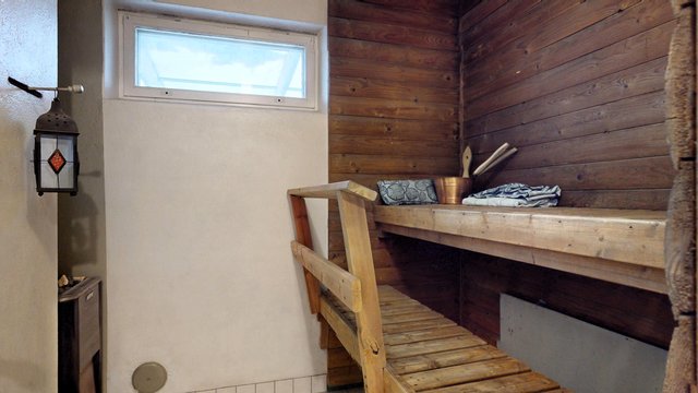 Vuonna 2009 uusittu saunaosasto kutsuu rentoutumaan puukiukaan lempeissä löylyissä. Energiatehokas maalämpö ja vesikiertoinen lattialämmitys (2019) takaavat miellyttävän asumismukavuuden ympäri vuoden.