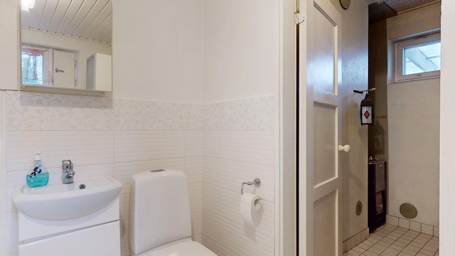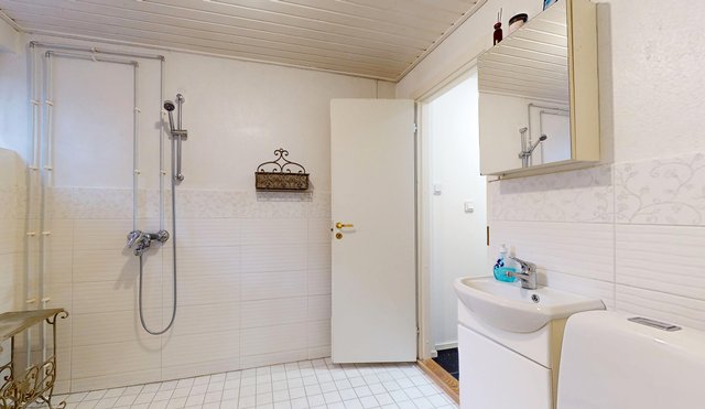 - WC-istuin, suihku, peilikaappi, pesuallas, ja allaskaappi