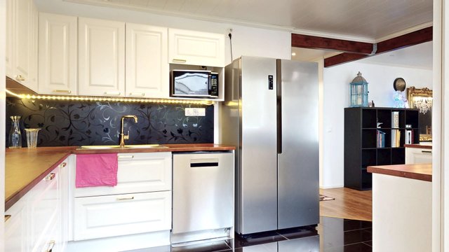 - Jääkaappipakastin (Side by side), liesituuletin, astianpesukone, erillisuuni, ja liesi