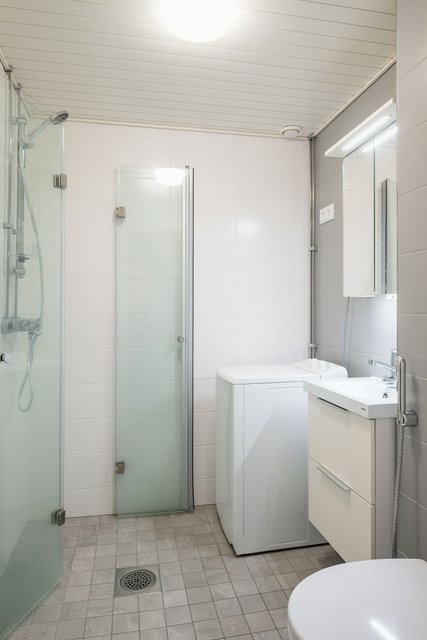- Tyylikäs ja tilava kylpyhuone, joka on uusittu linjasaneerauksen yhteydessä vuonna 2021. Varusteina wc-istuin, bidee-suihku, allas/allaskaappi, peilikaappi, suihku, taittuvat suihkuseinät, pesukoneliitäntä ja lattialämmitys.