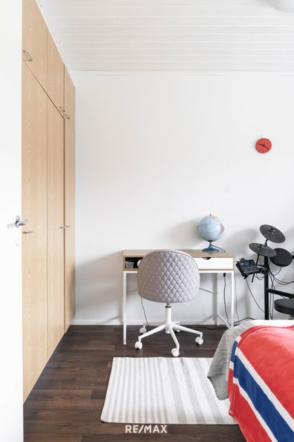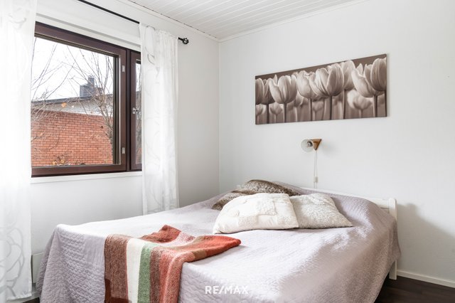 Makuuhuoneet on sijoitettu fiksusti omiin rauhallisiin kulmiinsa, joiden välissä on tuulikaappi ja erillinen wc. Toimivat ja kestävät materiaalit sekä hillityt sävyt, luovat sopusointuisen ilmeen koko huoneistoon. Kodin kylpyhuone on remontoitu vuonna 2013 ja oma sauna, jossa on vuonna 2025 uusitut lauteet viimeistelee kokonaisuuden.