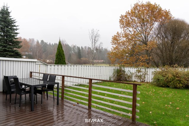 Aurinkoinen terassi jatkaa olohuoneen oleskelutilaa ulos kaakkoiseen auringonpaisteeseen, ja aidattu piha tekee pihasta suojaisan. Talo sijaitsee rauhallisella, mutta kuitenkin keskeisellä sijainnilla Koskenkylän palveluiden läheisyydessä. Palvelut, koulut ja päiväkodit ovat lähellä, ja seiskatiellekin liityt vain noin 5 minuutissa, josta pääsee esim. alle tunnissa Helsinkiin.