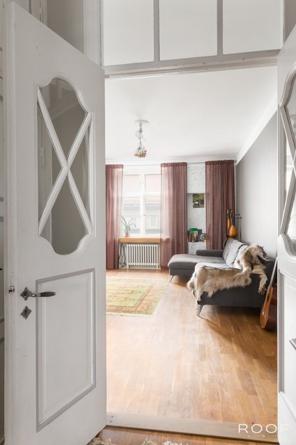 - Läpitalon huoneistosta kaupunkinäkymät Kaarlenkadulle olohuoneesta ja avaralle sisäpihalle makuuhuoneesta.