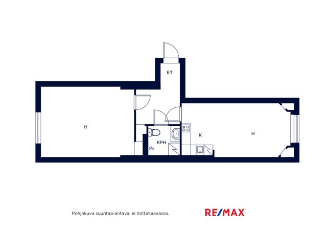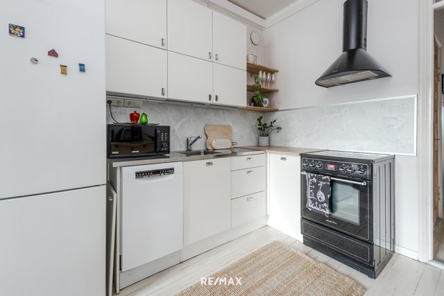 Tämä läpitalon kaksio sijaitsee talon ylimmässä kerroksessa. Asunnossa on olohuoneeseen avautuvat keittiö, suuri makuuhuone sekä kylpyhuone. Avokeittiö on varustettu astianpesukoneella ja keraamisella liedellä. Puulattiat luovat asuntoon lämpimän ja kodikkaan tunnelman.