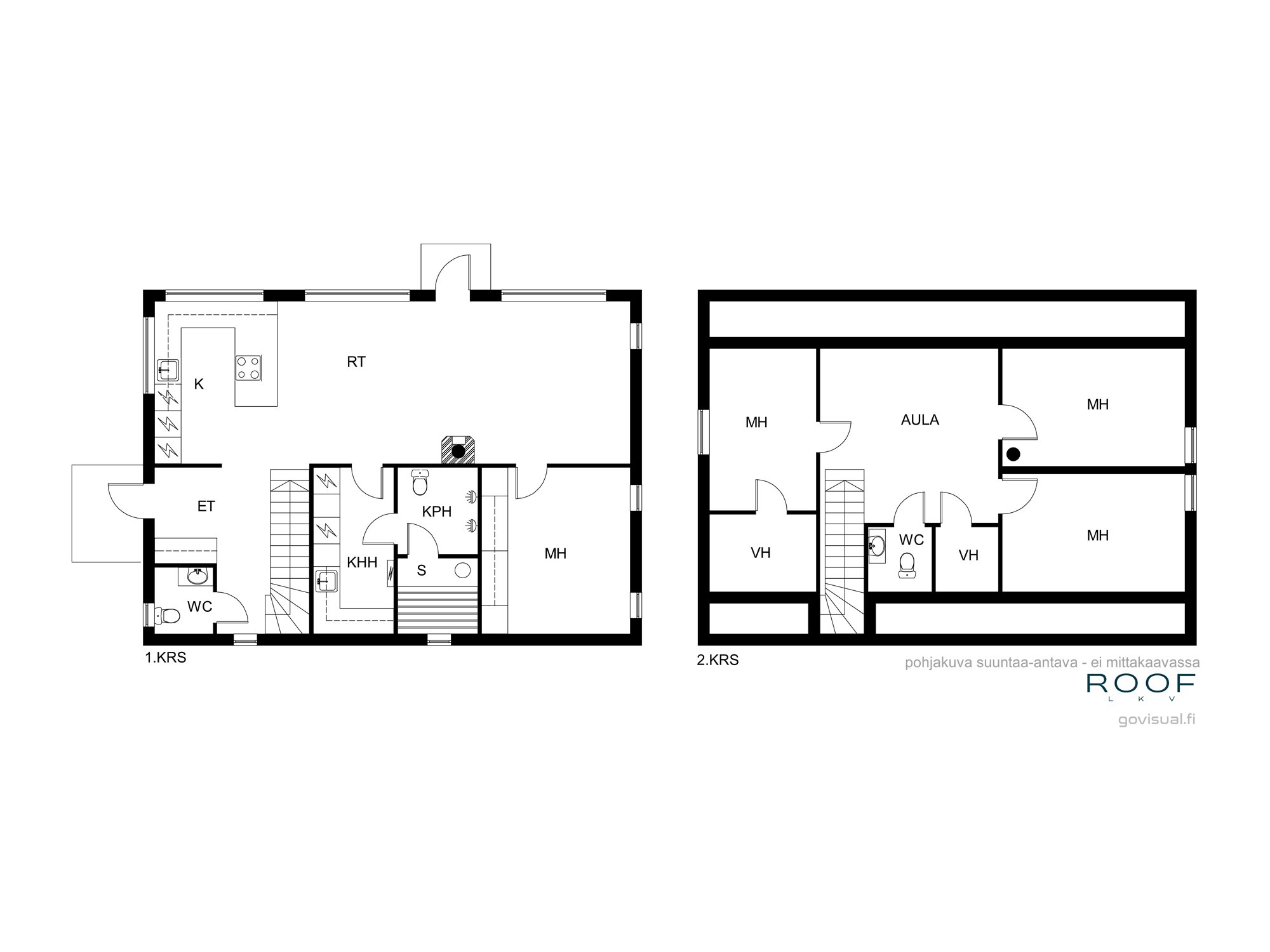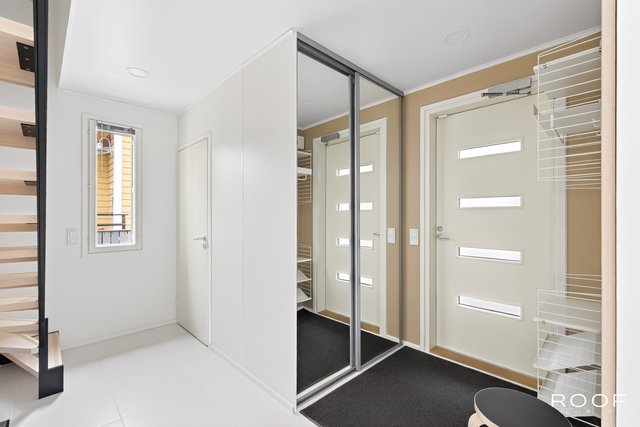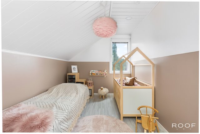 Koti jakautuu kahteen kerrokseen: alakerrasta löydät avarat yhteiset tilat, yhden makuuhuoneen, erillisen wc:n, kylpyhuoneen ja vuonna 2025 remontoidun kodinhoitohuoneen. Yläkerta tarjoaa kolme makuuhuonetta, wc:n ja monikäyttöisen aulan, joka muuntuu helposti lasten leikkitilaksi, työhuoneeksi tai vaikka viihtyisäksi olohuoneeksi.