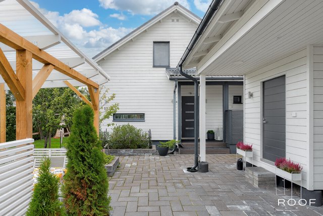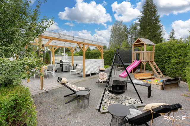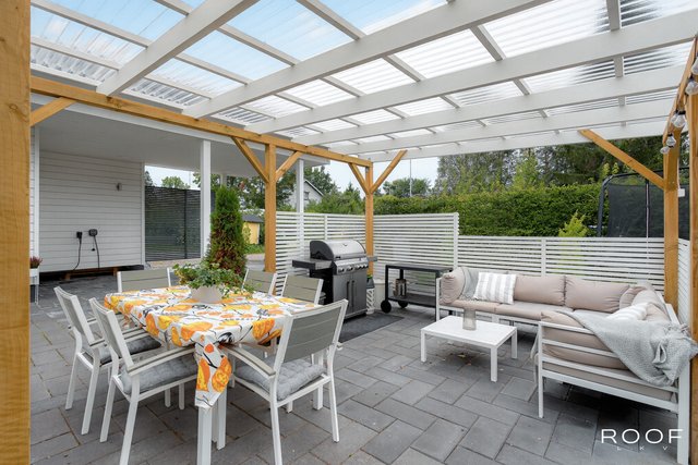 Pihapiiri on kuin oma keidas! Pergola ja istutukset tekevät siitä paikan jossa on helppo viihtyä ja nauttia auringosta.