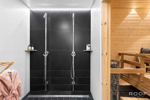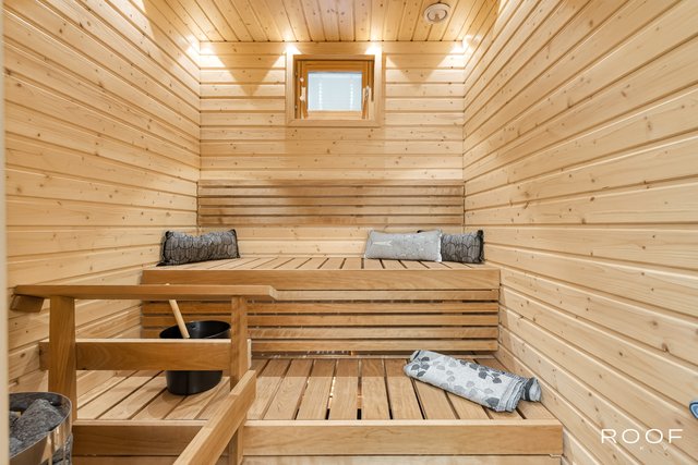 - Lattia: laatta. Seinät: puu. Kiukaan tyyppi: sähkökiuas.