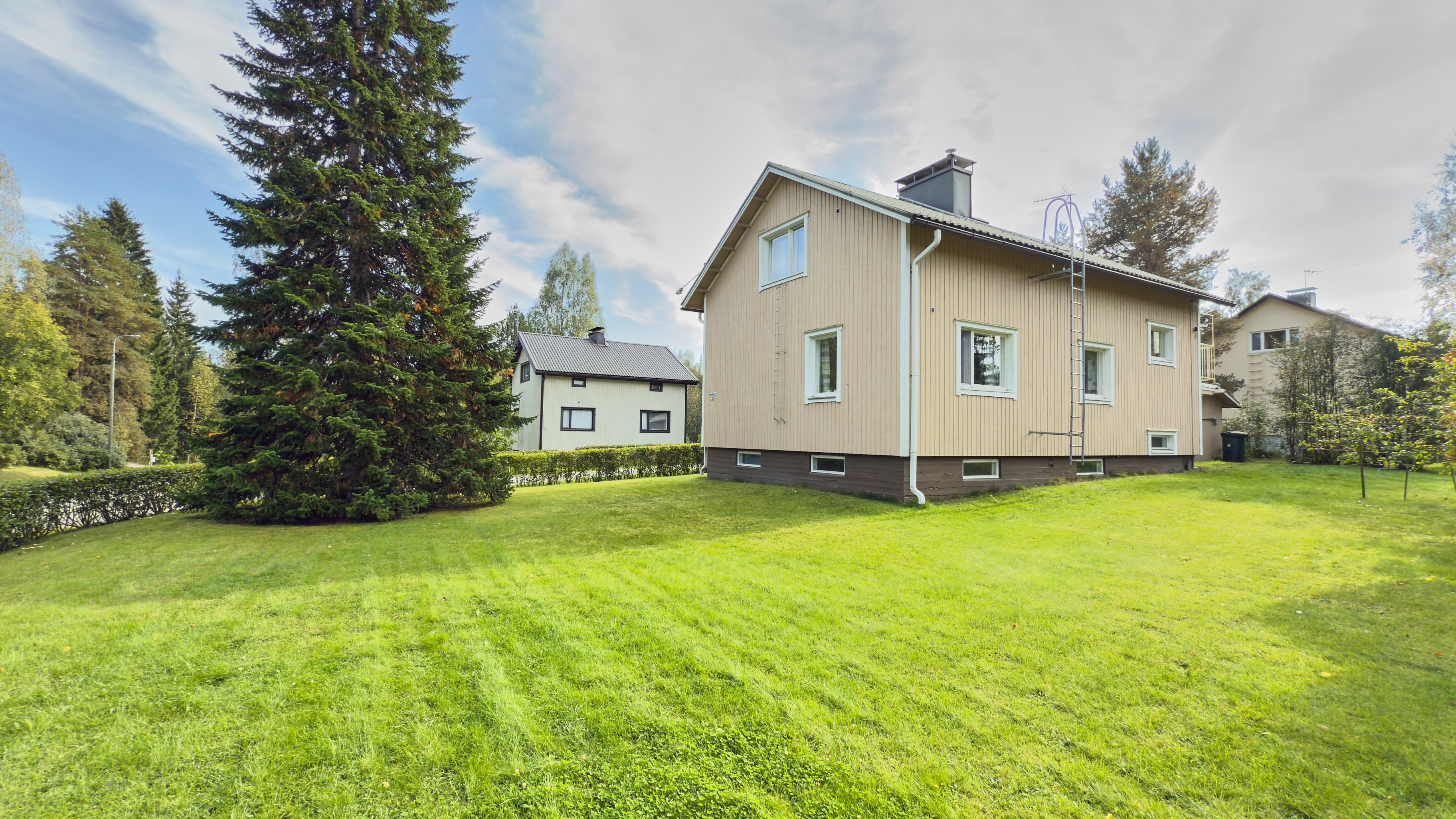 Kaunis rintamamiestalo Joenniemen-Vuohijoen rauhallisella ja vehreällä alueella odottaa uusia asukkaita. Vuonna 1953 valmistunutta taloa on huollettu erinomaisesti, ja sen ulkokuori on kuin uusi. Sisätilat tarjoavat retrohenkistä tunnelmaa, mutta ovat siistissä kunnossa. Kahden kerroksen keittiöt ja WC:t tekevät remontin aikaisesta asumisesta vaivatonta.