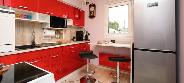 - Jääkaappipakastin, mikroaaltouuni, ja astianpesukone