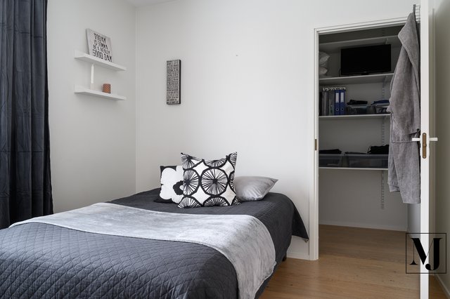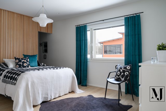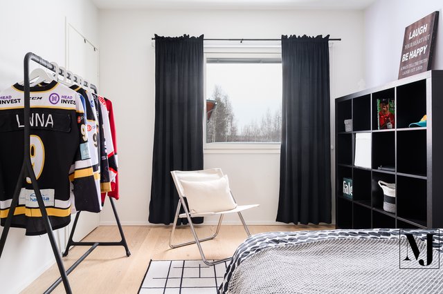 - Tässä kodissa on yhteensä neljä tilavaa makuuhuonetta: yksi alakerrassa ja kolme yläkerrassa. Kahden makuuhuoneen yhteydessä on omat vaatehuoneet ja päämakuuhuoneessa on walk-in closet.