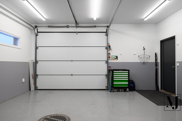 - Tilava ja laadukas lämmin autotalli, jossa on öljynerottelukaivo, vesipiste, voimavirta, ilmanvaihto sekä wc-istuin. Autotallin nosto-ovi toimii kaukosäätimellä. Lattia on pinnoitettu ja on helppohoitoinen.