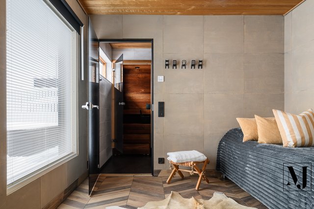 Saunatilat muodostavat oman rauhallisen kokonaisuutensa. Tilava sauna kutsuu viipyilemään ja sen yhteydessä oleva oleskeluhuone minikeittiöineen luovat täydelliset puitteet rentoutumiseen ilman kiirettä. Oleskelutilasta avautuu suora käynti terassille jossa poreamme viimeistelee kokonaisuuden. Tässä tilassa nautit omasta ajasta, hiljaisuudesta ja lämmöstä, täysin erillään kodin muusta toiminnasta.