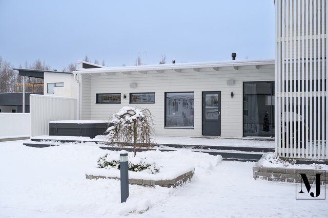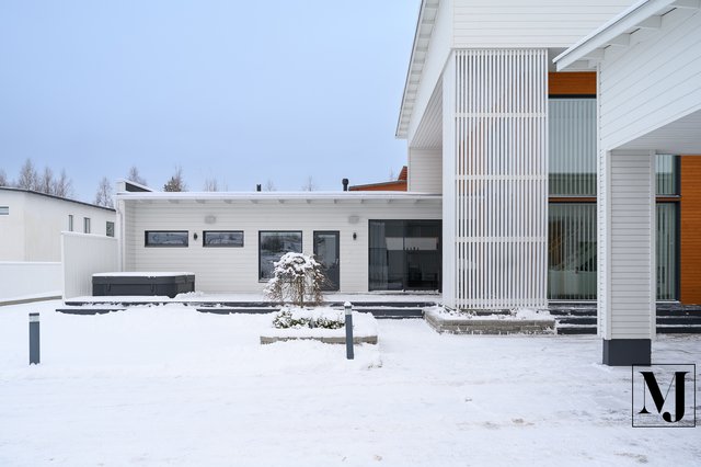 Kaunis, aidattu pihapiiri sekä helppohoitoinen piha tarjoaa turvallisen ja suojaisan ympäristön lapsille ja lemmikeille. Tilava etelään avautuva terassialue poreammeineen kutsuu rentoutumaan.
