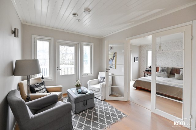 Tämä ihastuttava, muuttovalmis kokonaisuus henkii kodikkuutta, harmoniaa ja hyvää tunnelmaa. Tervetuloa tutustumaan!