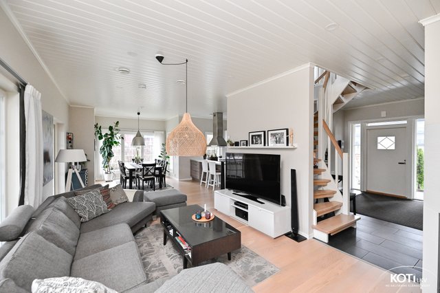 Tämä kaunis ja lämminhenkinen koti tarjoaa ihanteelliset puitteet perhe-elämälle. Talon selkeä ja tehokas tilasuunnittelu tekee arjesta sujuvaa, ja kaikissa tiloissa korostuvat valoisuus, toimivuus ja asumisen väljyys.