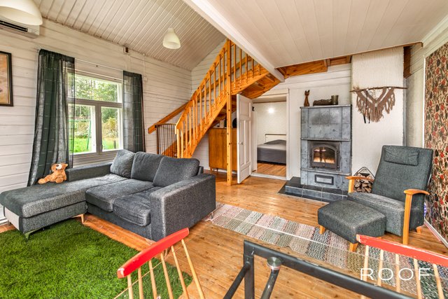 Asuinrakennus on myös hirsirakenteinen. Alakerrassa eristetty lasikuisti, korkea olohuone, jossa vuolukivitakka sekä ilmalämpöpumppu. Toimiva keittiö, jossa puuhella, tilava makuuhuone sekä remontoitu wc. Yläkerrassa makuuhuone sekä osin olohuoneen päälle rakennettu parvitila.
