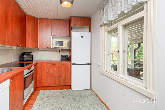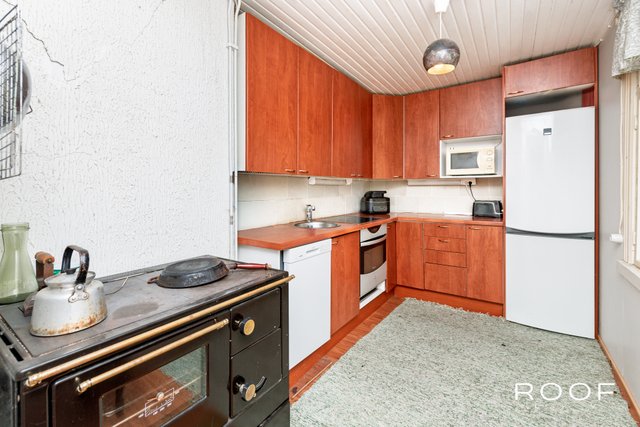 - VARUSTUS: Kaapistot, työtasot, hana, pesuallas, puuhella LATTIA: Laminaatti SEINÄT: Maalattu