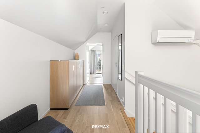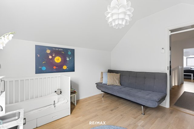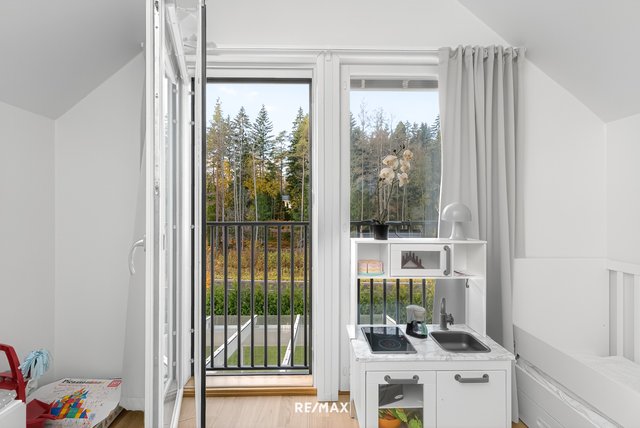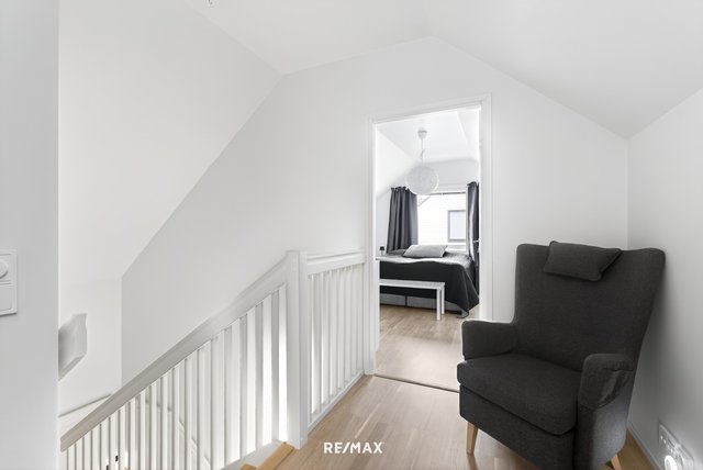 Makuuhuoneita on kolme, yksi alakerrassa ja kaksi yläkerrassa. Yläkerran toisessa makuuhuoneessa on ranskalainen parveke, josta näkyy läheinen metsä. Alakertaan on mahdollisuus palauttaa olohuoneen viereinen huone tarvittaessa. Yläkerran aulatila on mainio lisä pieneksi oleskelutilaksi tai lisäsäilytystilaksi.