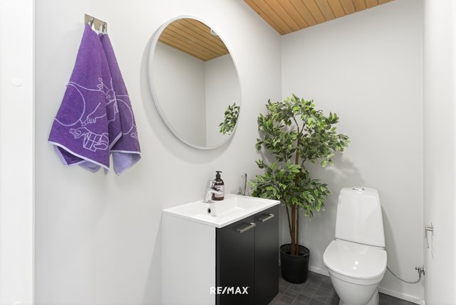 - Alakerrassa erillinen wc, jossa valopeili, allaskaappi, wc-istuin. Seinät maalattu, lattia laattaa. Vesikiertoinen lattialämmitys.