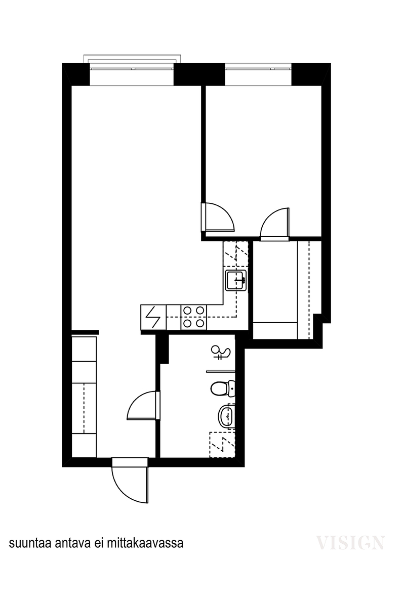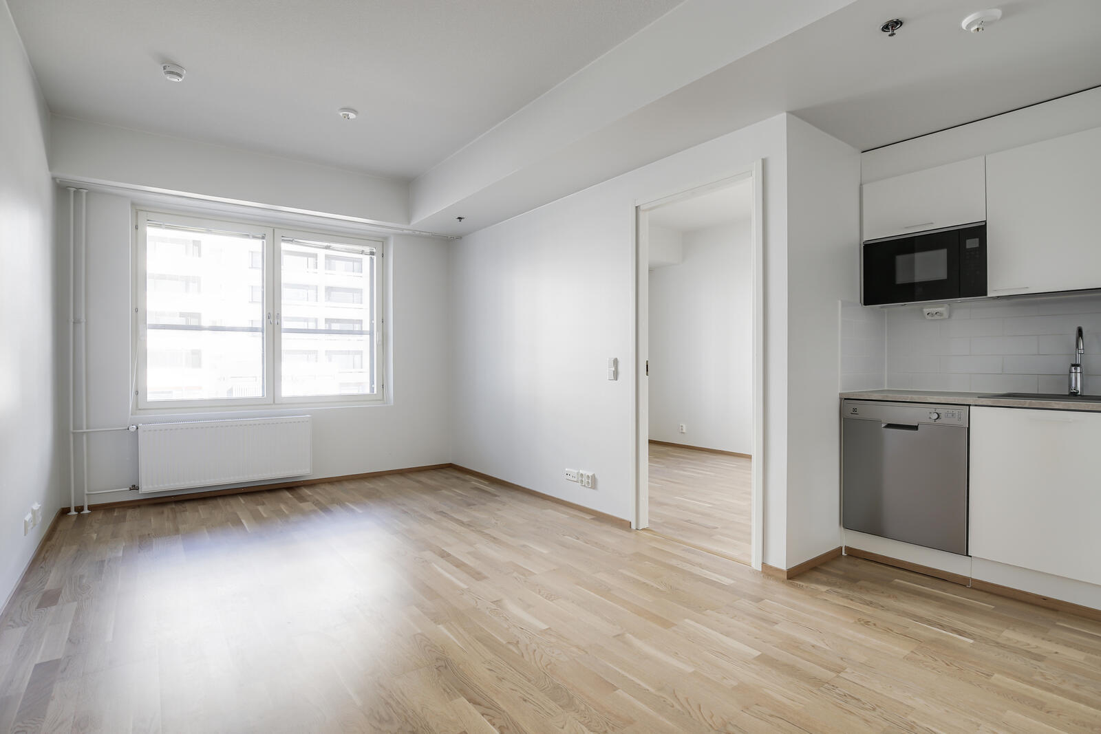 Hyvällä paikalla v. 2021 valmistuneessa yhtiössä valoisa kaksio.