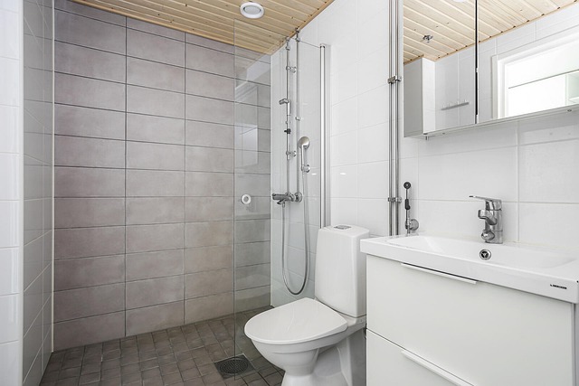 - Suihkuseinä, pesukoneliitäntä, peilikaappi, wc-istuin, ja suihku