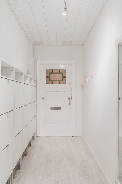 Huoneisto on ihastuttavan valoisa, ympärillä olevat naapuritalot eivät varjosta kokoaikaisesti asuntoa, ja pohjaratkaisu on selkeä. Keittiössä on kaikki tarvittavat kodinkoneet, työtasoa. Kodinkoneita on uusittu: kylmälaite vuonna 2020 ja astianpesukone 2023. Keittiön kiintokalusteiden ovet ja etusarjat on uusittu 2025. Huoneiston kylpyhuone on ajalle tyypillisesti söpön pieni mutta erittäin siisti ja toimivakin, suihkulle ja wc istuimelle altaineen on riittävästi tilaa, oman pyykinpesukoneen voi halutessaan viedä pesutupaan ja vain omaan käyttöön. Makuuhuone on puolestaan huomattavan iso ja sen ohessa on monitoimi alkovi, mikä taipuu mainiosti esim. nukkuma- tai työtilaksi. Vanhan kivitalon tunnelmaa ei voi keinotekoisesti jäljitellä, täältä löydät vanhat ikkunapenkit ja puikkopatterit, muhkeat jalkalistat, korkeat huoneet, kauniit peiliväliovet ja moniruutuikkunatkin puhumattakaan paksuista kiviseinistä. Porraskäytävä on vanhoine hisseineen kerrassaan viehättävä.