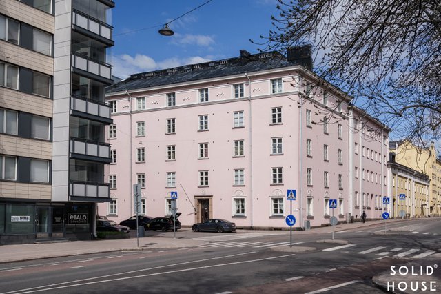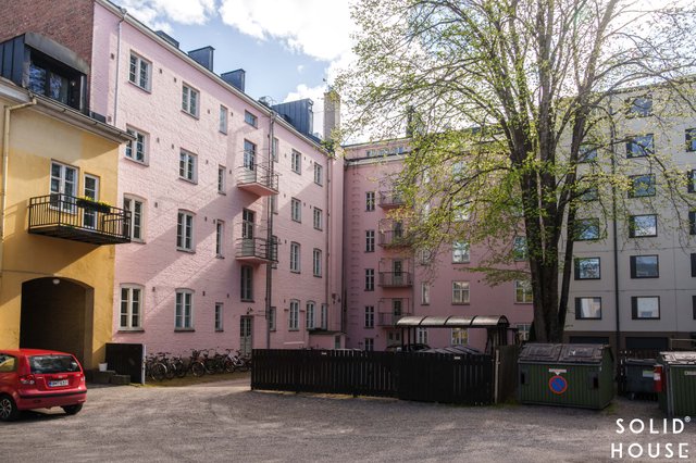 Läpitalon kaksio sijaitsee neljännessä kerroksessa, josta avautuvat näkymät sekä yhtiön vehreälle ja aukealle takapihalle että eläväiselle Kaivokadulle. Liikenne alueella on varsin vilkasta, mutta kaupungin äänet kantautuvat hämmästyttävän vaimeina itse huoneistoon, ikkunat on uusittu 1989. Makuuhuone on oivallisesti pihan puolella.