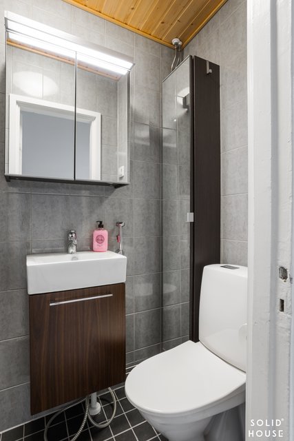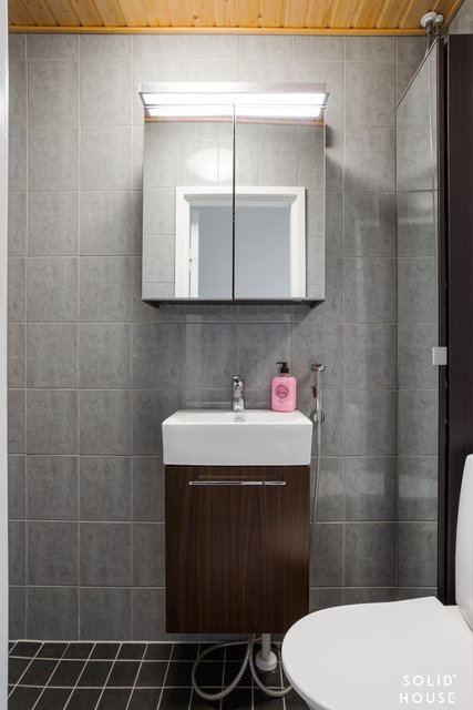 - Peilikaappi, pesuallas, allaskaappi, wc-istuin ja bidee-suihku