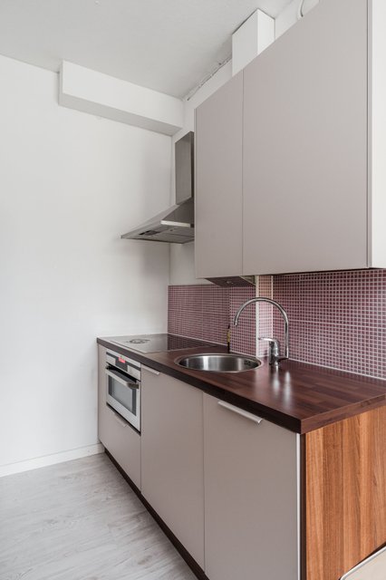 - Jääkaappipakastin (LG, väri teräs), liesi (aeg), uuni (yhdistelmäuuni aeg), astianpesukone (integroitu whirlpool), liesituuletin (for ikea from whirlpool, rosterinen) ja allas ja hana. Jääkaappi vaihdettu uuteen 2020 ja tiskikone uusittu 2023. Keittiön kiintokalusteiden ovet ja etusarjat on vaihdettu 09/2025.