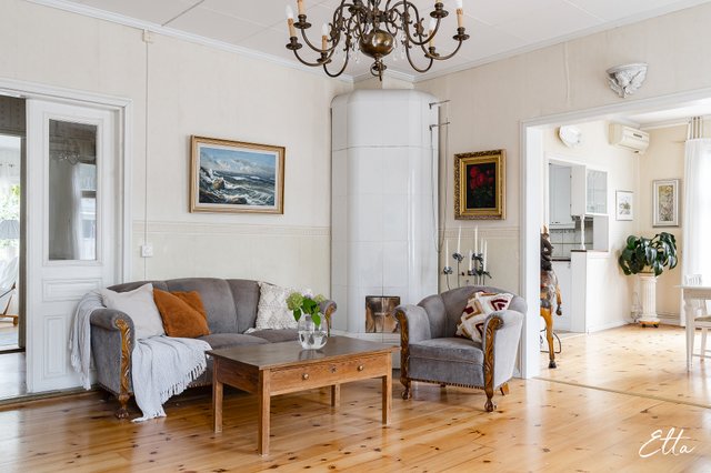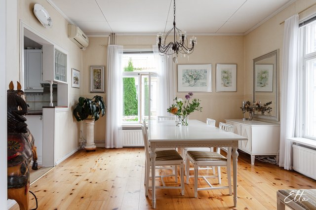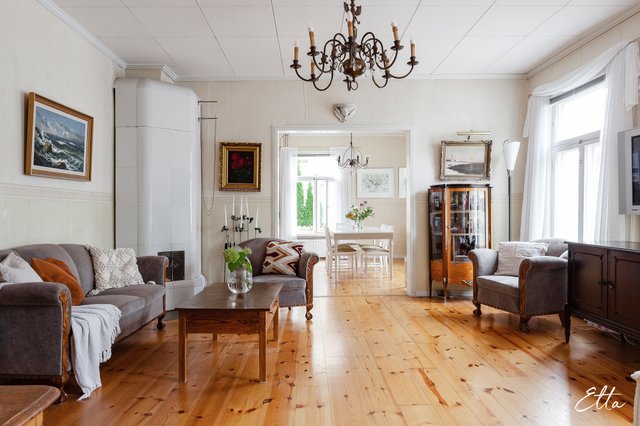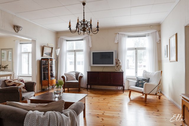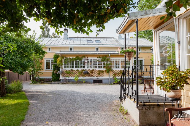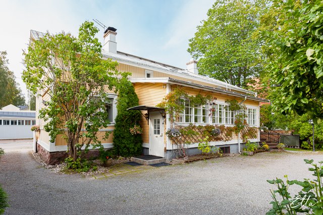 Tämä hurmaava puutalokokonaisuus sopii erinomaisesti sinulle, joka etsit tilavaa ja persoonallista kotia, jossa on vanhan ajan henkeä ja runsaasti mahdollisuuksia. Kahteen kerrokseen sijoittuva koti tarjoaa runsaasti tilaa suuremmallekin perheelle, jaettuun asumiseen tai vaikkapa lyhytaikaisvuokraukseen. Kauniit yksityiskohdat, kuten vanhat peiliovet, veranta sekä vehreä puutarha tekevät kodista tunnelmallisen ja uniikin. Kahden erillisen sisäänkäynnin ansiosta tiloja on helppo muokata erilaisiin tarpeisiin.