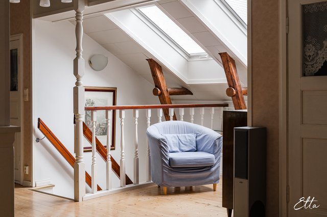 Yläkerrassa sähköinen poistoilma.
