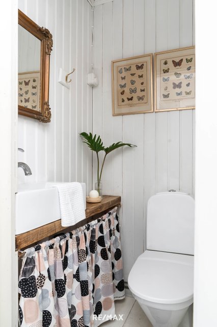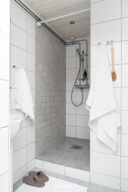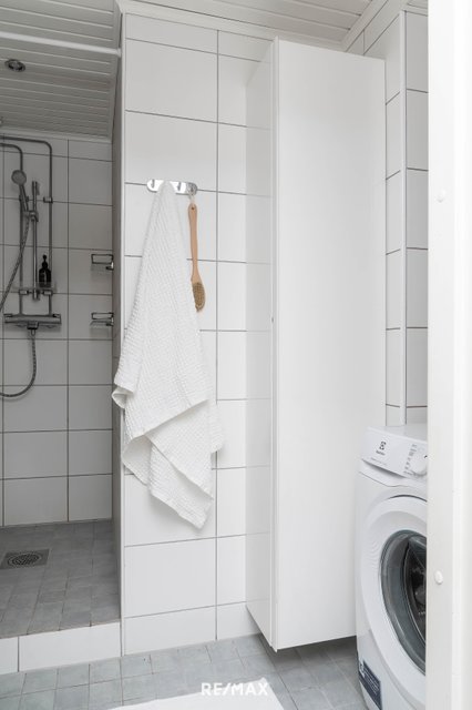 - Suihku, pesuallas, pesukoneliitäntä, lattialämmitys, kaapisto, ja peilikaappi